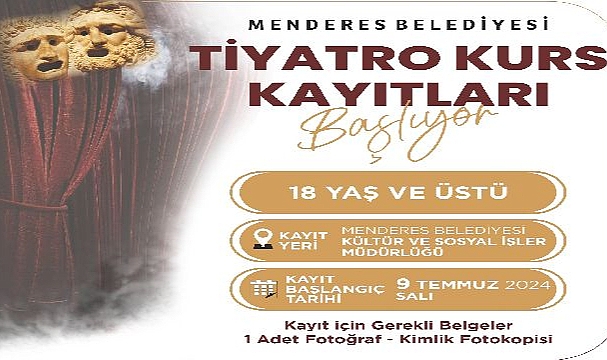 Menderes Belediyesi tarafından 18 yaş üstü vatandaşlar için ücretsiz olarak düzenlenecek tiyatro kursları için başvurular 9 Temmuz’da başlıyor.