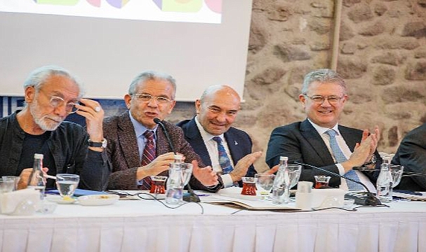 Toplantıda, 30 Ekim İzmir depreminin ardından riskli olduğu için yıkılan İzmir Büyükşehir Belediyesi ana hizmet binasının yerine yapılacak yeni yapı için düzenlenen “Bir Uygarlık Odağı Olarak Başkanlık ve Şehir Meclisleri Fikir Projesi” yarışmasında birinci olan proje tanıtıldı. Yarışmanın Jüri Başkanı Nevzat Sayın, mimar Selim Atak, iç mimar Rahmi Hızarcıoğlu, peyzaj mimarı Doğu Ayan ve mimar Cansen Molva’nın projesinin neden birinci seçildiğine dair detayları paylaştı. Nevzat Sayın, “Bütün demokratik olduğunu iddia eden kentler şehir meclislerini, simgesel bir yapı olarak konumlandırıyorlar. Biz de bunu yapabilir miyiz diye düşündük. Bu yapılacak yapı Konak Meydanı’na zarar vermemeli, açık ve demokrasi etkileşimi özendiren bir yapı olmalı. Yapının kendisi anıt niteliğinde olmalı gibi birçok kriter belirledik. Bu projenin birinci seçilmesinin nedenlerinden biri, başkanlık makamı, meclis binası ve halkla ilişkiler ofislerinin uyumu. Bu parçalı tasarımın bu coğrafyada yapılan mimari yapılarla bir akrabalıkları bulunuyor. Yapı dışardan bakıldığı zaman birbirinden kopuk 3 yapı olarak görünebilir. Yapıda en egemen yapı meclis binası. Bu yapının bulunduğu yerle kurduğu ilişki bize anlamlı ve iyi geliyor” şeklinde konuştu. Cumhuriyet’in ikinci yüzyılına en çok yakışacak şeyin bir demokrasi anıtı olduğu düşüncesiyle yola çıkıldığını belirten Nevzat Sayın, “Şimdi artık o binanın imalatıyla ilgili süreçler başlıyor. Bu süreçte jürinin uygulamanın tamamen içinde olmalarını istiyoruz. Herhangi bir bina imalatı gibi yapılsın istemiyoruz. Bizim de gelecek nesillere bırakacağımız güzel bir miras olur umuyorum” ifadelerini kullandı.