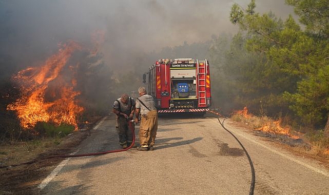 İlk belirlemeye göre kaynak makinesinden çıktığı tahmin edilen yangında can ve mal kaybının olmadığını söyleyen İzmir Büyükşehir Belediyesi İtfaiye Dairesi Başkanı İsmiail Derse, “Bölgede arazi engebeli. Bu da müdahale etkisini ve hızını yavaşlatıyor. Rüzgar da alevlerin sıçramasını kolaylaştırıyor. Biz burada 100'ün üzerinde ekip ve 25 araçla söndürme çalışmalarına katıldık” dedi.